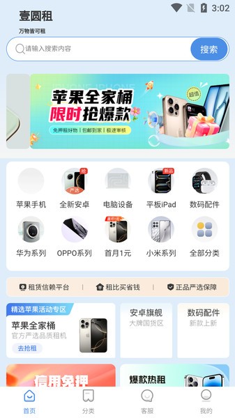 壹圆租app是款十分平安靠得住的电子产品租赁平台,为列位带来超多样的电子产品,在线产品超多样且租赁价钱低廉,轻松满意不一样用户租赁的需要,智能推送适合本人的电子产品,专业靠得住的手机租赁平台,轻松满意列位用户的租借需要。