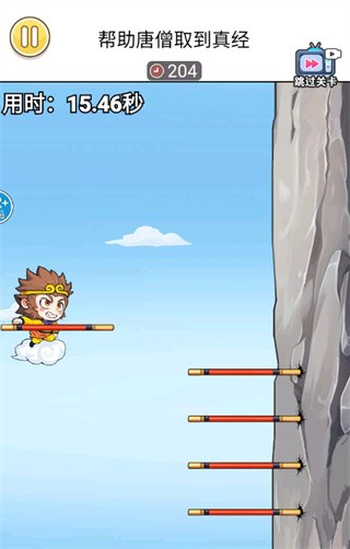 - 能够经过点击来发射出金箍棒,协助唐僧一步步的向上前进,取得真经。