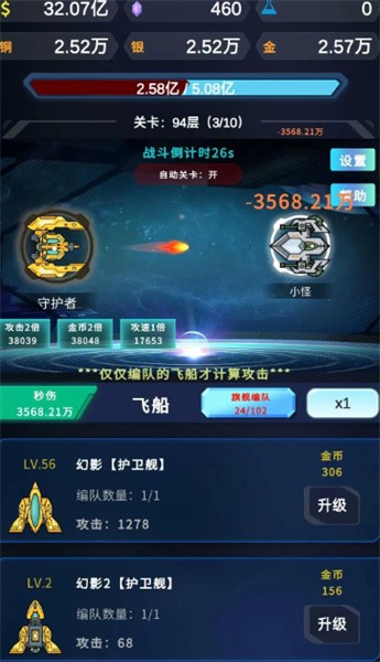 - 通过不断赚取经验值和游戏币,升级飞船的攻击力和防御力,打造无敌战舰。