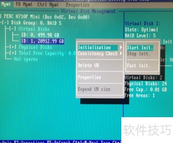 在PD Mgmt界面按下Ctrl+N,选中Ready状态的两块硬盘,然后使用F将它们配置为全局热备盘。