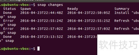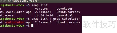- 执行 snap list 命令可查看系统中已安装的软件包管理单元。
