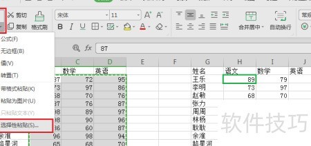 - 点击文档左上角粘贴按钮,选择选择性粘贴选项。