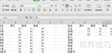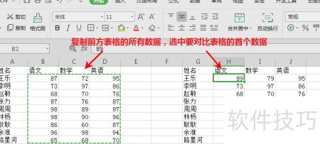 选择前一表数据并使用Ctrl+C复制到下一个表的首行或指定位置。