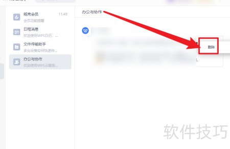- 在办公协作界面选中消息,右键点击即可完成删除操作。