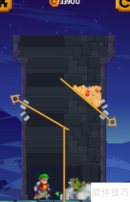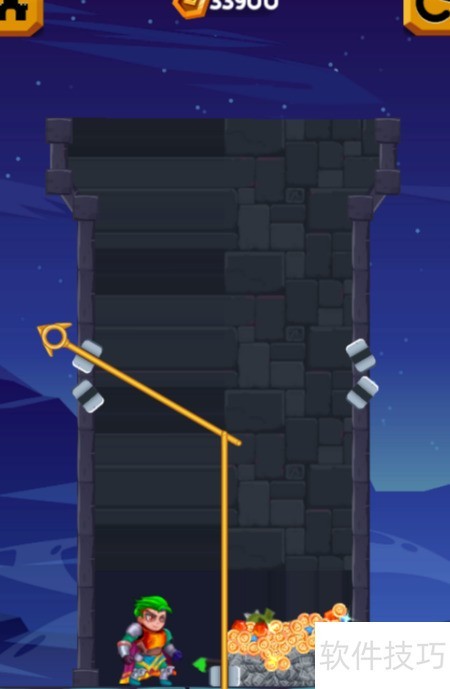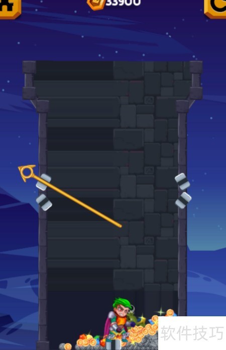 - 本关含五根拉针,目标为取得宝藏,详情见图示。