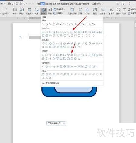 - 新建WPS文档,依次选择插入、形状,然后点击圆角矩形工具。