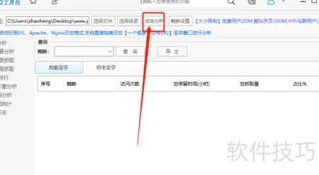 - 上传网站日志后,点击分析按钮即可,操作所示。