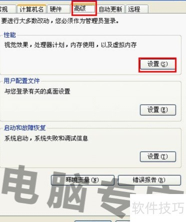- 右键我的电脑选择属性,进入高级选项后点击设置按钮即可。