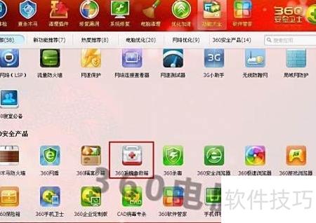 - 启动360安全卫士,进入功能大全,查找并开启360系统急救箱,操作示所示。