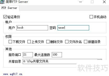 建立FTP服务器时,采用的登录名和密码分别是book和“。为了安全起见,在本地创建一个名为user.txt”的文件,并在该文件的第一行输入book作为用户名,第二行输入“作为密码。每项信息应占单独一行。