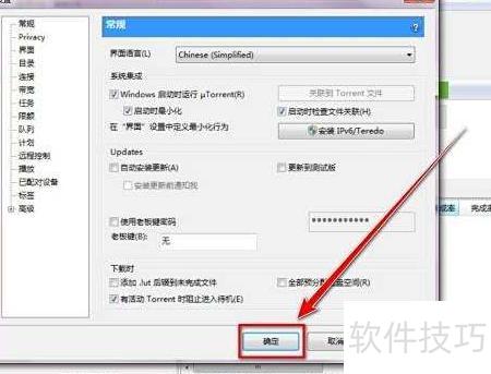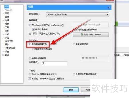 - 点击即可关闭μTorrent自动更新功能,操作所示。