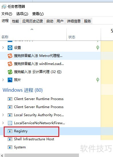 - 重新打开任务管理器后,registry进程的CPU使用率显示为0。