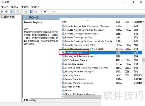 - 弹出窗口后,找到远程注册表选项并双击启动。