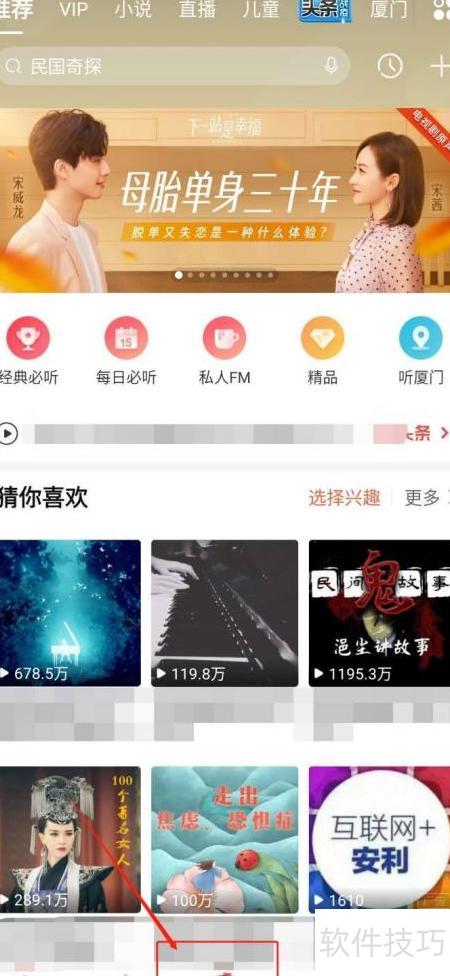 - 打开喜马拉雅,点击底部播放键或选中想听的节目即可开始收听。