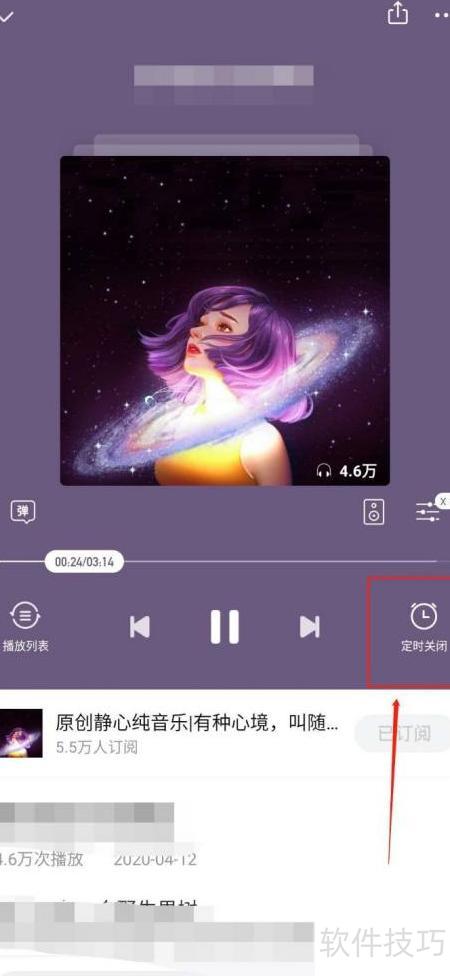 - 返回播放界面,右侧倒计时显示定时关闭状态,时间结束自动停止播放。
