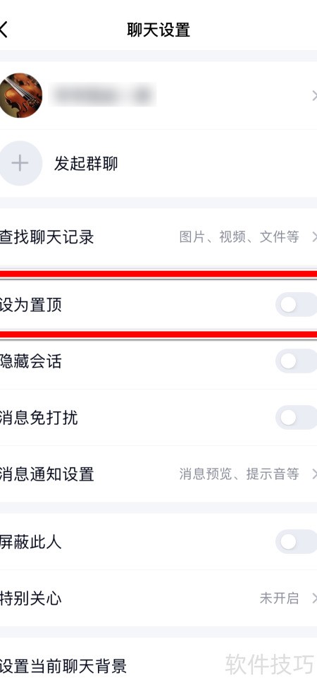 - 关闭置顶功能的开关,即可取消好友聊天窗口的置顶状态。