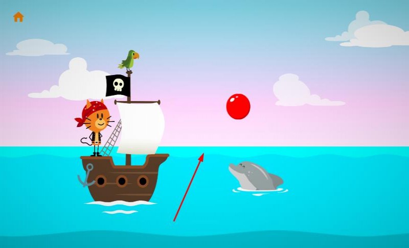 - 进入海洋场景,操控的海盗船在蓝色海面上飞行,飞行过程中会碰到各类海洋生物和物品,经过点击或滑动屏幕与这些元素互动。